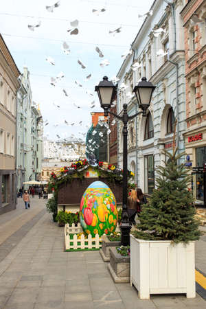 MOSCOW, RUSSIA - APRIL 28, 2016: Moscow street festival, preparations and decoration for Orthodox Easter holiday