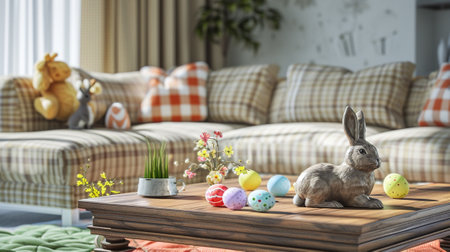 Spring Awakening: Delightful Pastel Throw Pillows with Easter Motifs Brightening Up a Family Living Room