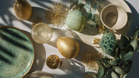Celebrate the holiday spirit with festive easter interior images, featuring bright compositions of colorful eggs, cakes, and flowers, creating a cozy and vibrant mood.