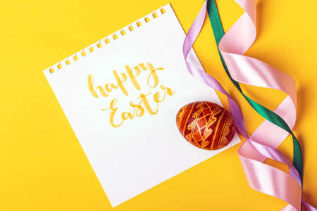 happy easter card. beautiful Easter egg Pysanka handmade - ukrainian traditional
