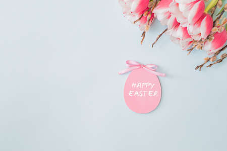Minimalistic Easter composition. Retro style text. Top view. Flat lay