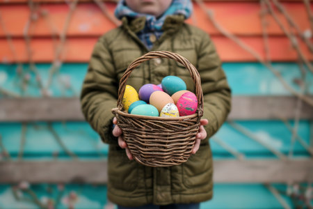 Child holding a basket with easter eggs