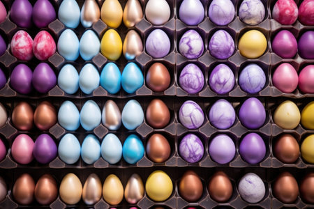 top view of stacked finished chocolate easter eggs, created with generative ai