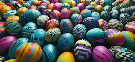 A stunning, colorful background of beautifully designed Easter eggs, capturing the spirit of Easter celebrations. Ideal for spring decor, creative projects, festive invitations, or