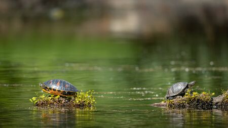 Profile of an Eastern Painted Turtle Chrysemys picta basking in the sun on a rock in Maryland during the Summer