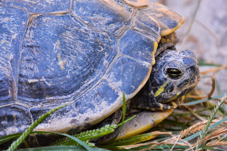 Close up of a red-bellied turtle (Trachemys scripta elegans)