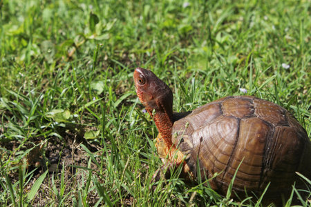 Adult male Eastern Box Turtle Terrapene carolina discovered in a grassy field in Maryland during the Summer