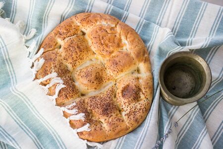 Turkish Ramadan Pita or Ramazan Pidesi. (Pide) Traditional bakery concept.