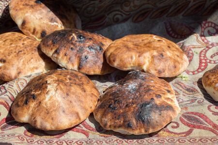 fresh just made traditional uzbek bread close up