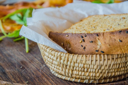Sesame bread in the basker with butter