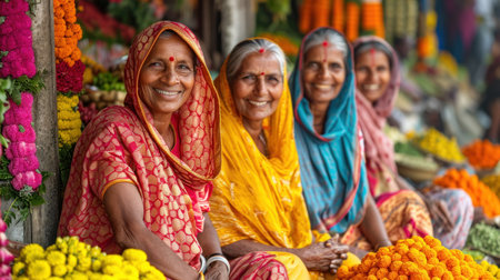 Indian women at the flower market.