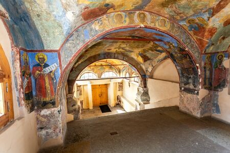 Veliky Novgorod, Russia - August 23, 2019: Ancient Frescoes in Znamensky Cathedral. Cathedral of Our Lady of the Sign (1682-1688)