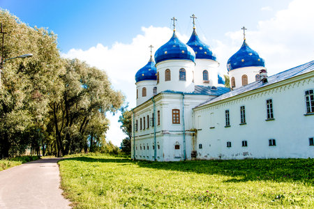 Saint Yuriev religious Orthodox Monastery architecture, Veliky Novgorod, Russia