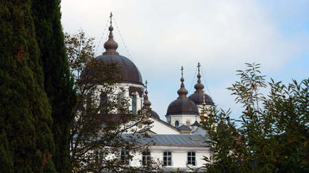 GURZUF, RUSSIA - SEPTEMBER 1, 2021: Orthodox Church of the Assumption of the Blessed Virgin Mary in village of Gurzuf