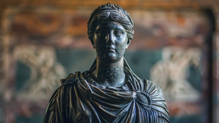 Close-up of a majestic Roman emperor statue, showcasing intricate detail and conveying power and legacy. Ancient history embodied in stone.