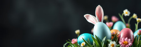 An Easter-themed arrangement featuring pastel-colored eggs and playful bunny decorations, perfect for holiday celebrations and creative design.