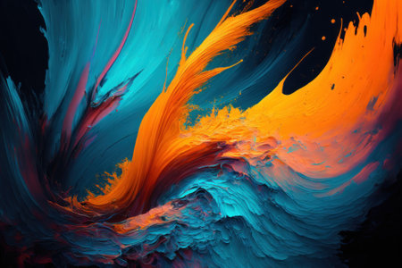 Vivid color splash motion capture. Orange and blue colors. Digital illustration