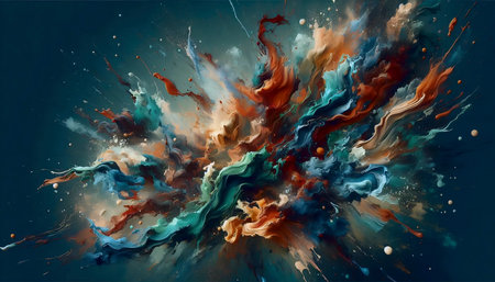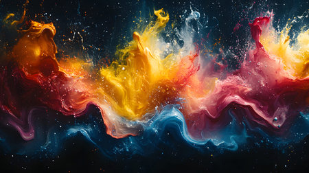 Vibrant abstract splash with paint and liquid movement. Great for expressive designs, artistic posters, and energetic branding.