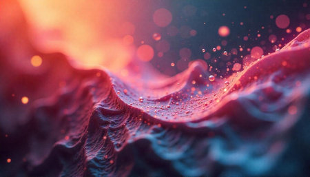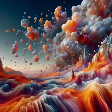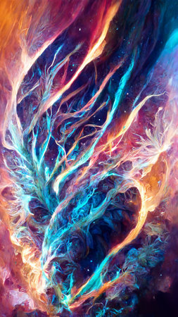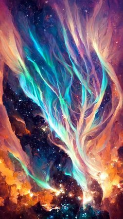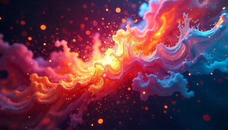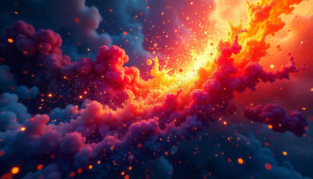 Fiery abstract cloudscape with vibrant colors and bokeh lights