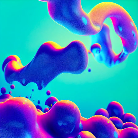 Vivid colors intertwine in a liquid display, forming captivating patterns filled with tiny bubbles.