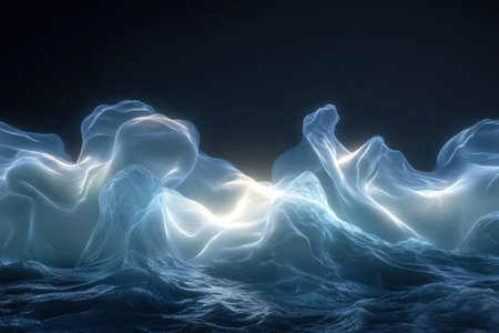 Abstract 3d rendering of beautiful wavy surface with waves and clouds