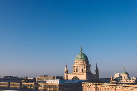 April, 9th, 2017 - Potsdam, Brandenburg, Germany. Potsdam city skyline with St. Nicholas church dome as main architectural dominant and famous tourist attraction. Also known as St. Nikolaikirche.