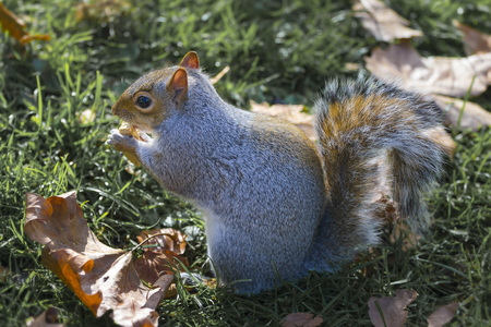 The grey squirrel eating nut in St. James