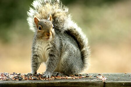 Gray squirrel on wood board