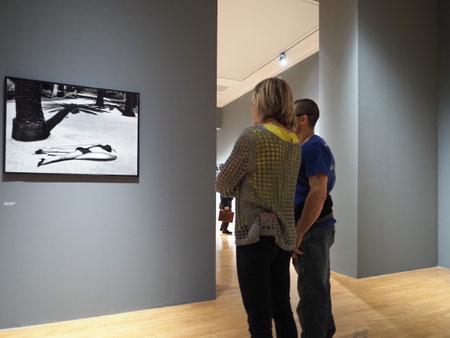 San Francisco, USA - August 2019: Guy visiting Photography and Art of Mistakes exhibition in San Francisco Museum of Modern Arts