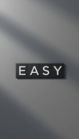 This image showcases the word EASY in black and white letters, symbolizing simplicity and positivity. Ideal for design projects and motivational themes.