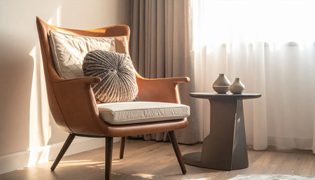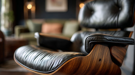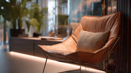 Luxurious leather chair in a modern living room with cozy ambiance and stylish decor