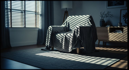 Comfortable armchair in a modern living room with blinds effect