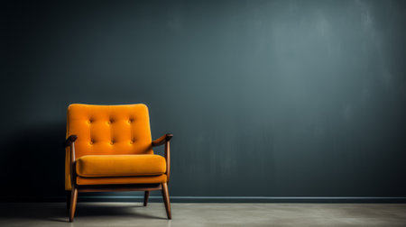 Modern designer chair stands againempty wall in blue colors. Generative AI