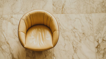 A stylish round chair with soft leather upholstery sits elegantly on a marble floor, creating a cozy and sophisticated atmosphere perfect for interior design themes.