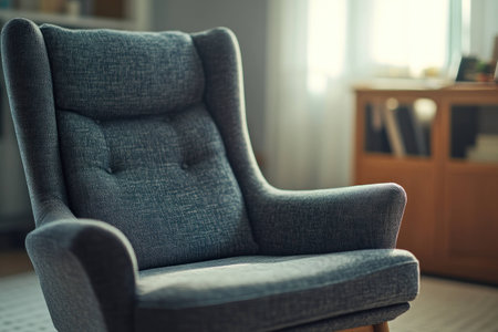 Cozy grey armchair in bright living room setting, ideal for modern interiors and peaceful relaxation, showcasing contemporary furniture design and soft textures