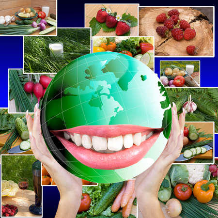 Smiling Green Globe Planet Earth white smile teeth Healthy Food Concept
