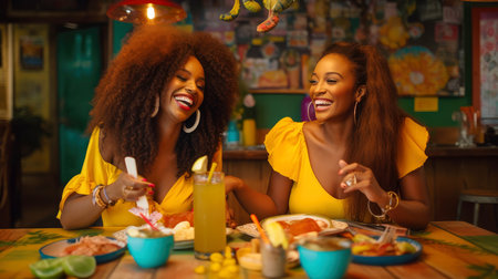 Diverse lesbian couple enjoying a meal together in a cozy cafe.
