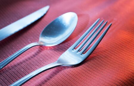 Cutlery fork and spoon on the plate on table