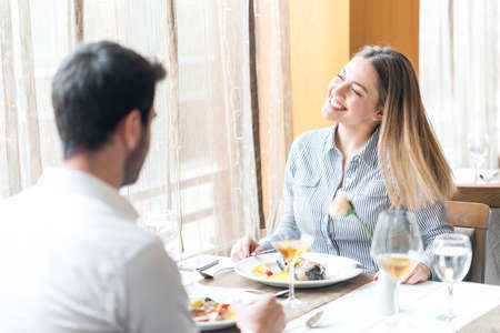 Young Couple Enjoying Meal On Date In City Restaurant Together