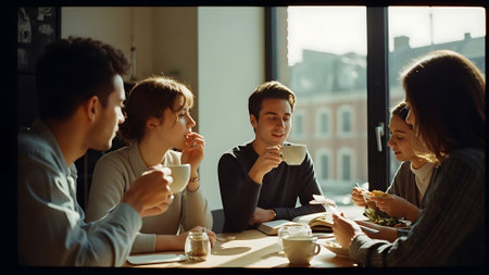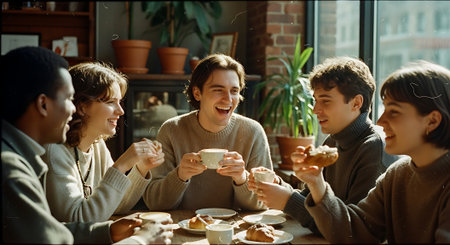 A group of friends enjoying coffee and conversation in a cozy cafe