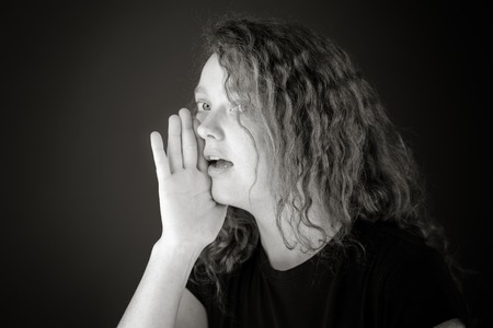 model isolated on plain background calling shouting