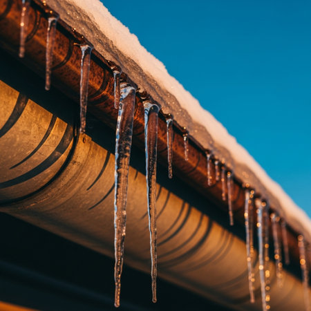 Icicles hanging from the roof of a building in winter.