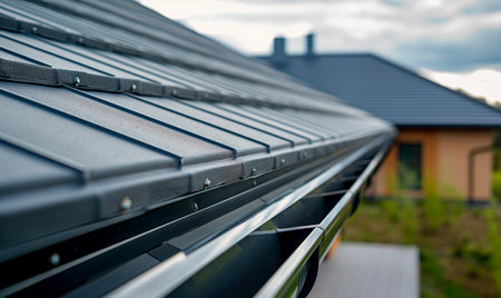 Detail image of new roof with gutter rain system