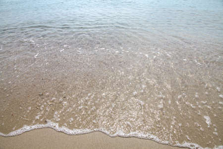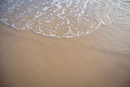 Soft white wave of sea on sandy beach used as Background.