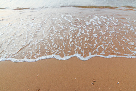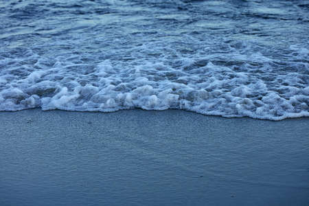 Soft wave of the sea on the sandy evening beach.Soft focus,blurred image.Copy space.Toned.
