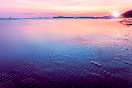 landscape of tropical beach and colorful sky at sunset in Krabi province, Thailand