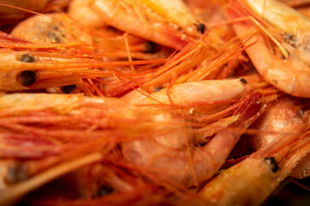 Cooked Atlantic shrimps. Close up. A traditional food of coastal cuisine