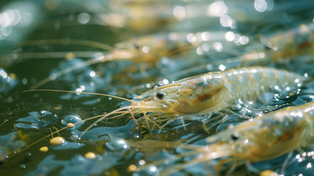 Shrimp Thriving in Clear Water Under Sunlight During an Active Farming Session in a Rural Region. Generative AI