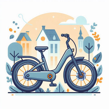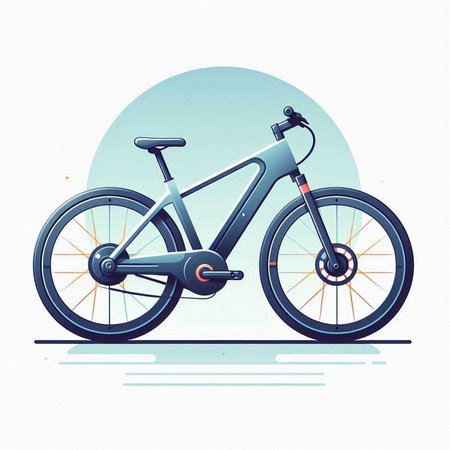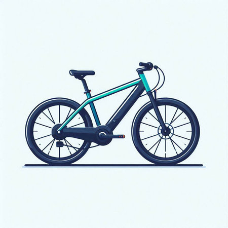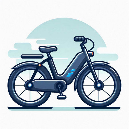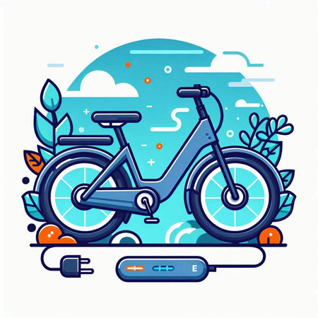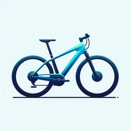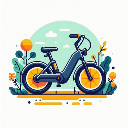 Vector illustration of bicycle in flat style on white background with blue sky.