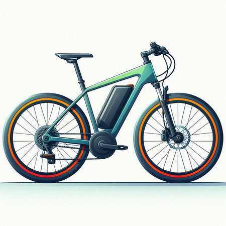 Detail of the steering wheel of a modern electric bicycle with speed controller, battery charging indicators and alarm bell